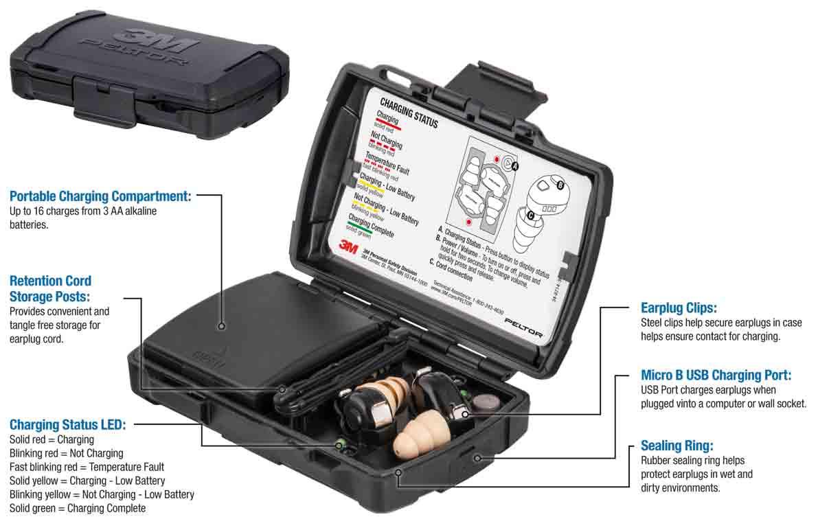 - Portable charging station helps protect earplugs in wet and austere environments