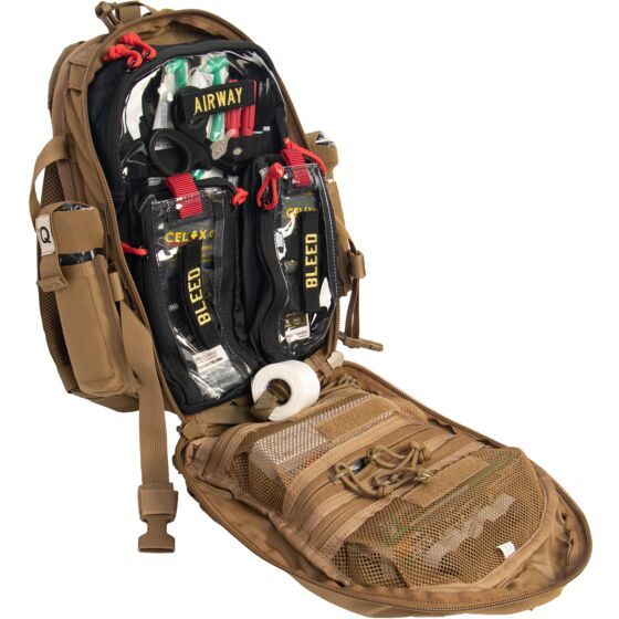 Versatile platform features two external pockets with two external tourniquet holders, one external pouch with additional drop-down pouch for use with breaching tools or storage for a hydration pack and an expansion zipper to increase load capacity