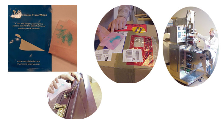 The MMC Cocaine Trace Wipe is especially developed in cooperation with Police and Customs Authorities for the determination of Cocaine residues on all surfaces such as: