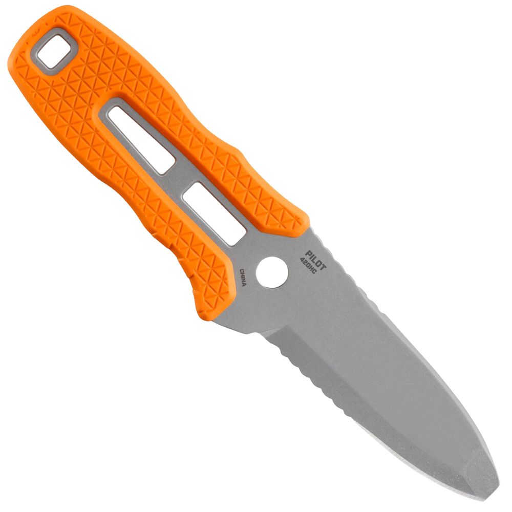 The NRS Pilot Knife delivers the durability, control, and safety professionals rely on during critical rescue situations. Designed with a blunt tip for accident prevention and a partially serrated 420 HC stainless steel blade, it handles rope, webbing, and line cutting with ease. The Thumbs Up Sheath allows one-handed deployment, while the glass-reinforced polypropylene handle with a rubber overlay provides a firm grip, even in wet conditions.
