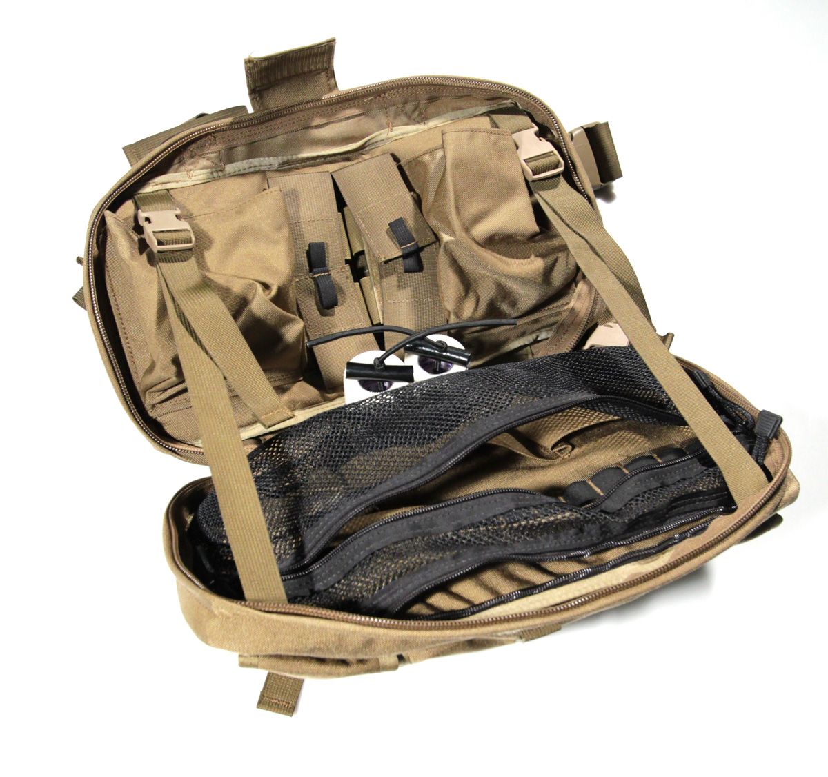 The center is equipped with elastic sewn into a molle compatible configuration.
