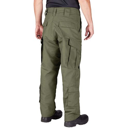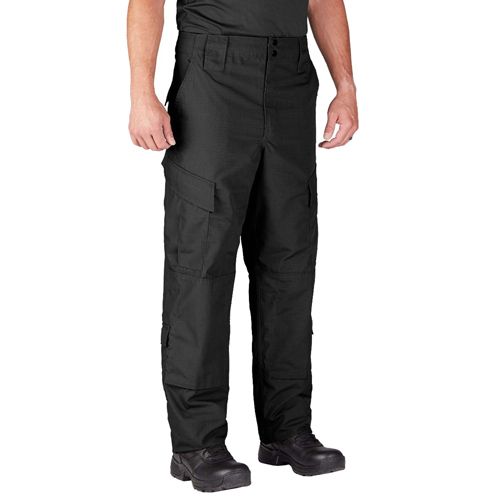 The 65 P/ 35C Rip Propper TAC.U Pant F5212-38 is military inspired, ideal for tactical use. It's fade, shrink and wrinkle free pant with felled inseams, outseams and seat seams for easy maneuverability. The TAC.U pant is specifically designed to provide extra comfort. It features two tilted and two shin high cargo pockets with hook and loop closure. The two back pockets with button flaps and durable drawstring leg closures enables it to look more professional The drawstring waist keeps the pant intact and firm as you go for tactical missions around the globe. It also features gripper waistband that keeps the coat tucked into the pants. The pant comes with reinforced seat and external opening for knee pads. These pants are super durable and can be used during the season with ease and comfort. The Propper TAC.U pant is used by military and law enforcement personnel.