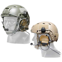 3M provides TCAPS devices for today’s modern warfighter designed specifically for use with firearms and ballistic combat helmets. The hearing protectors feature external microphones for environmental listening, commonly referred to as “talk-through”, so our service members can maintain auditory situational awareness while still protecting their hearing. In the “Hearing Defender” Configuration, there is no connection to two-way radios or intercoms, which can provide significant cost savings and removes unneeded cables where radio communications connection is not required.