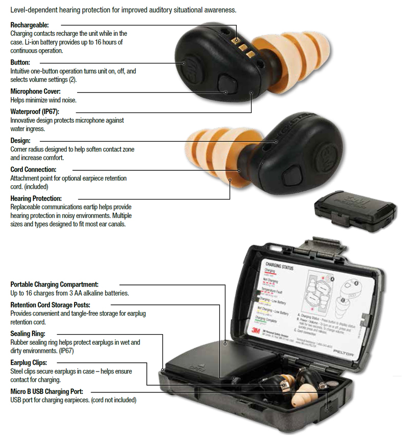 ![]() | PeltorWe strive to set the standard for confidence and trust by providing rugged, reliable protective communication equipment. Today, our Tactical Communication and Hearing Protection solutions are widely used within the Department of Defense, Department of Justice, Department of Homeland Security, and across U.S. state and local agencies. 3M PELTOR solutions for today’s modern warfighter have been designed for use in combat and combat support operations, specifically for use with firearms and ballistic combat helmets. The hearing protectors feature external microphones for environmental listening (aka: “Talk-Through”) capability, so operators can maintain auditory situational awareness while still protecting their hearing. You protect us. And we thank you by committing to continue to supply protective equipment. |